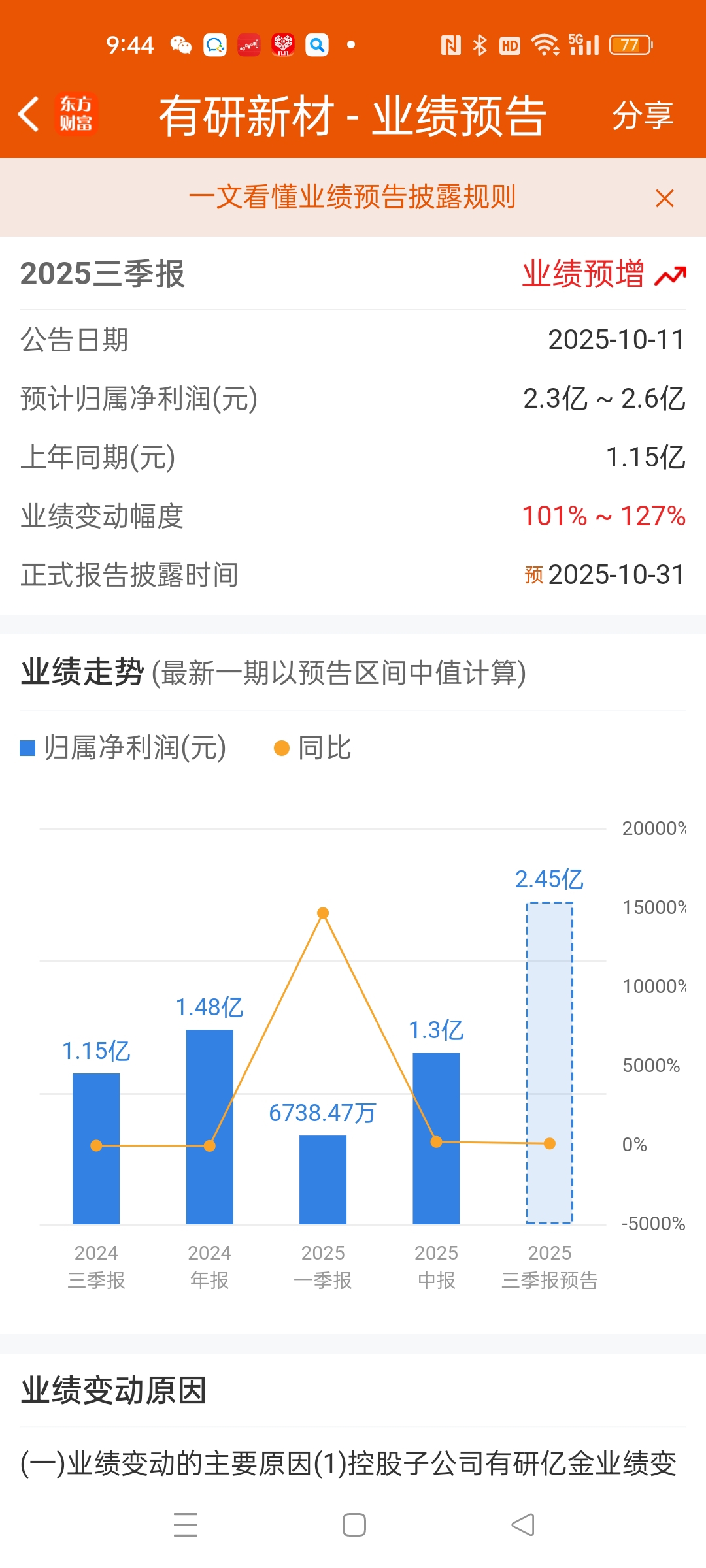 $有研新材(SH600206)$ 业绩预增,要启动了