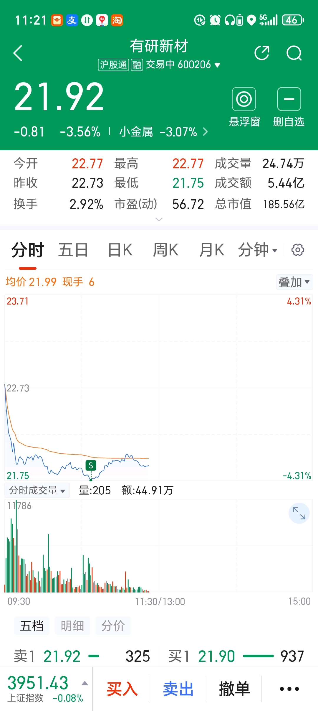 $有研新材(SH600206)$ 太坑了