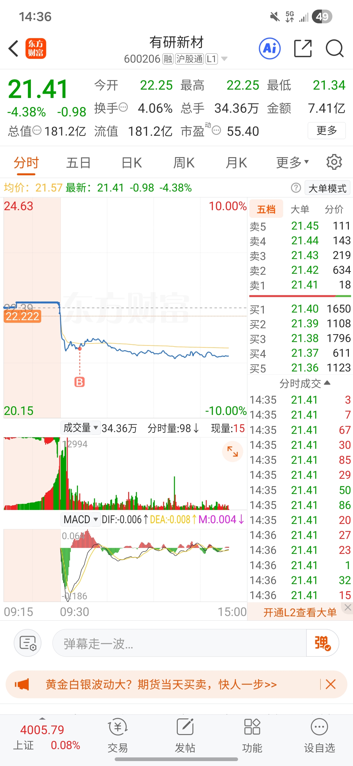 $有研新材(SH600206)$ 掉坑里了