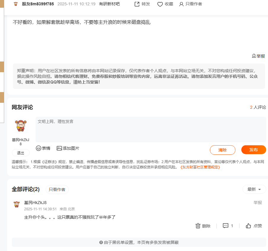 温馨提示: 1.根据《证券法》规定,禁止编造、传播虚假信息或者误导性信息,扰乱证券市场;2.用户在本社区发表的所有资料、言论等仅代表个人观点,与本网站立场无关,不对您构成任何投资建议。用户应基于自己的独立判断,自行决定证券投资并承担相应风险。《东方财富社区管理规定》