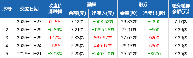 有研新材:融资净偿还903.52万元,融资余额7.12亿元(11-27)