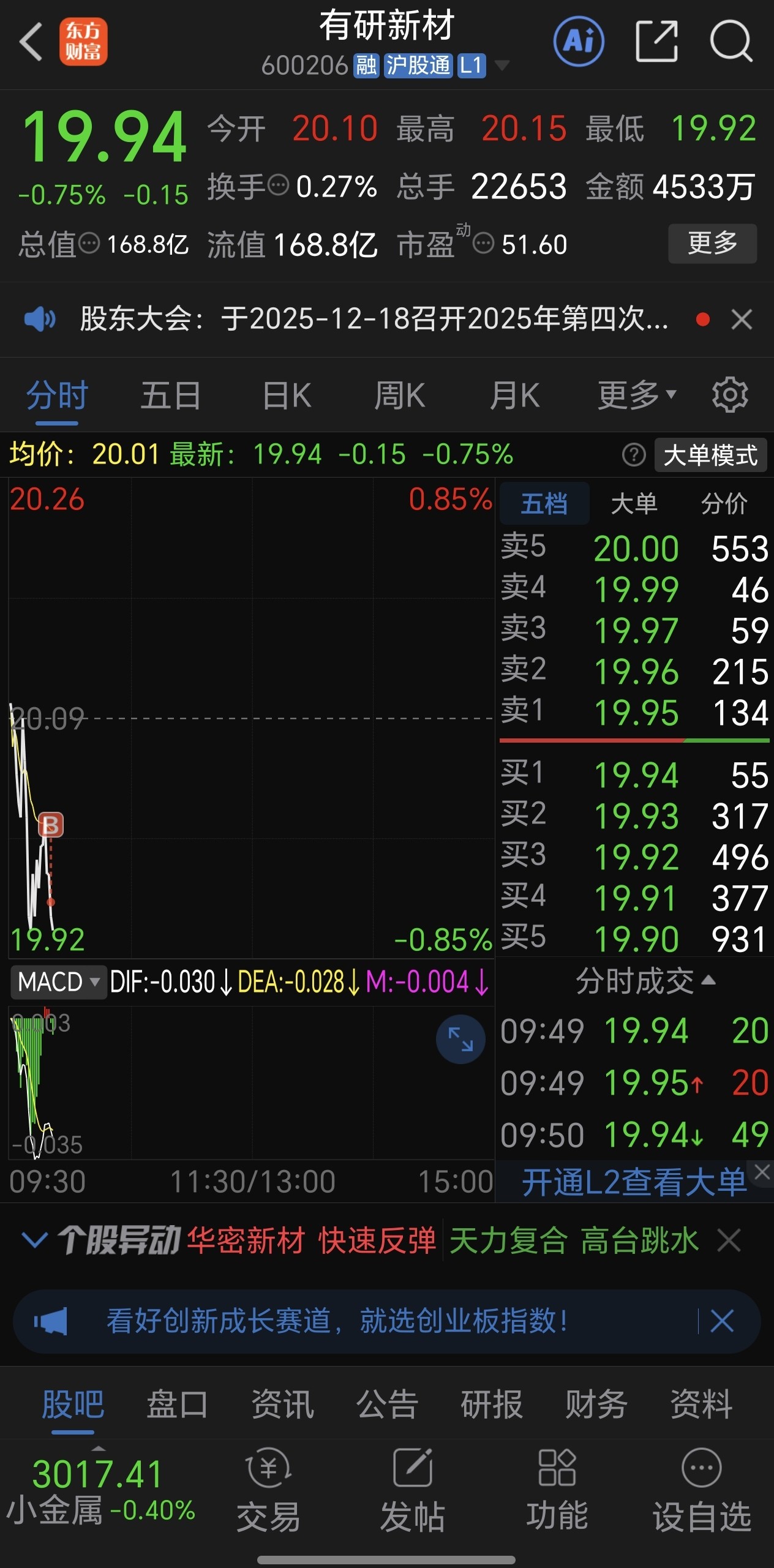 $有研新材(SH600206)$ 30分钟低9可以把 30分钟高9 T出来的回补了