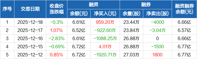 有研新材:融资净买入959.2万元,融资余额6.61亿元(12-18)