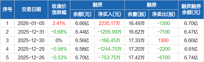 有研新材:融资净买入2235.17万元,融资余额6.66亿元(01-05)