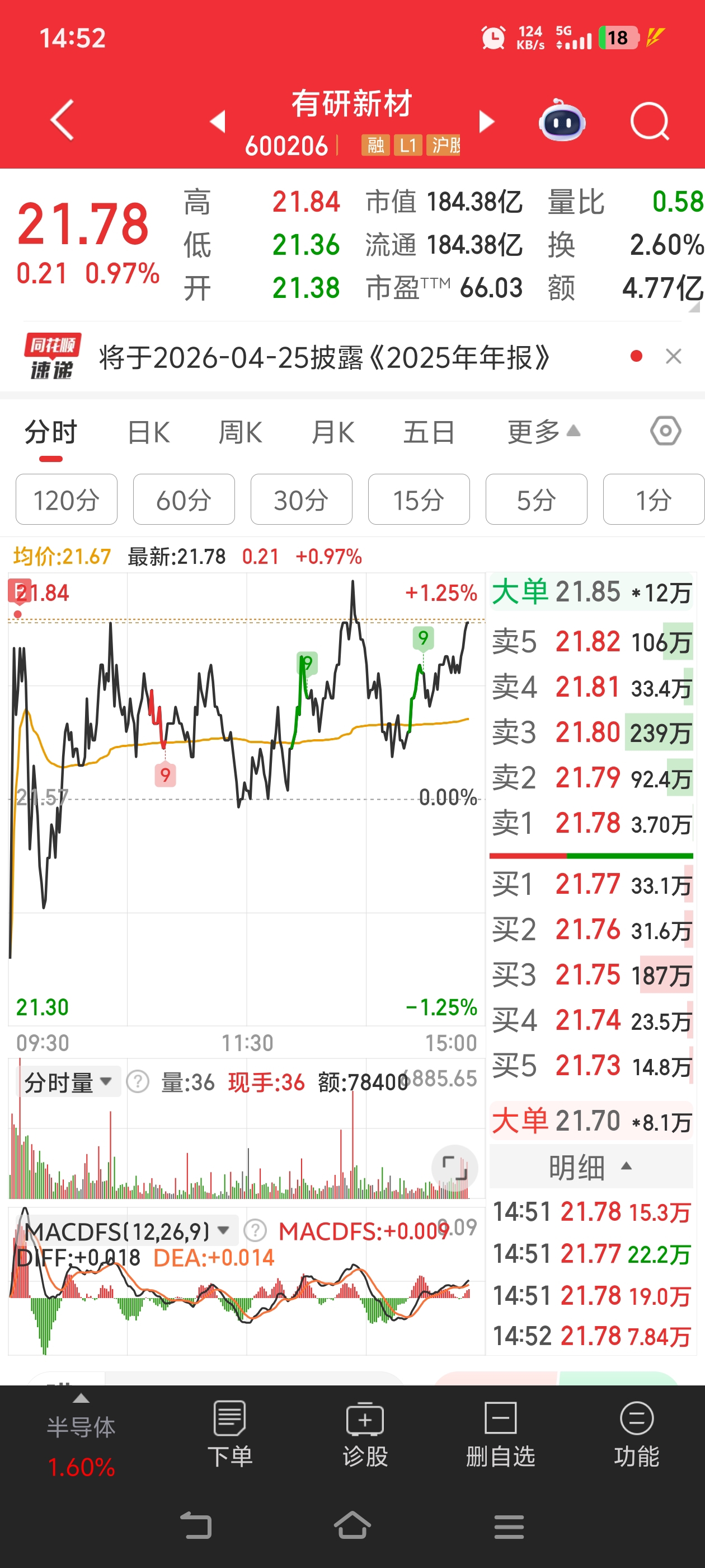 $有研新材(SH600206)$ 不把我挂山顶了?