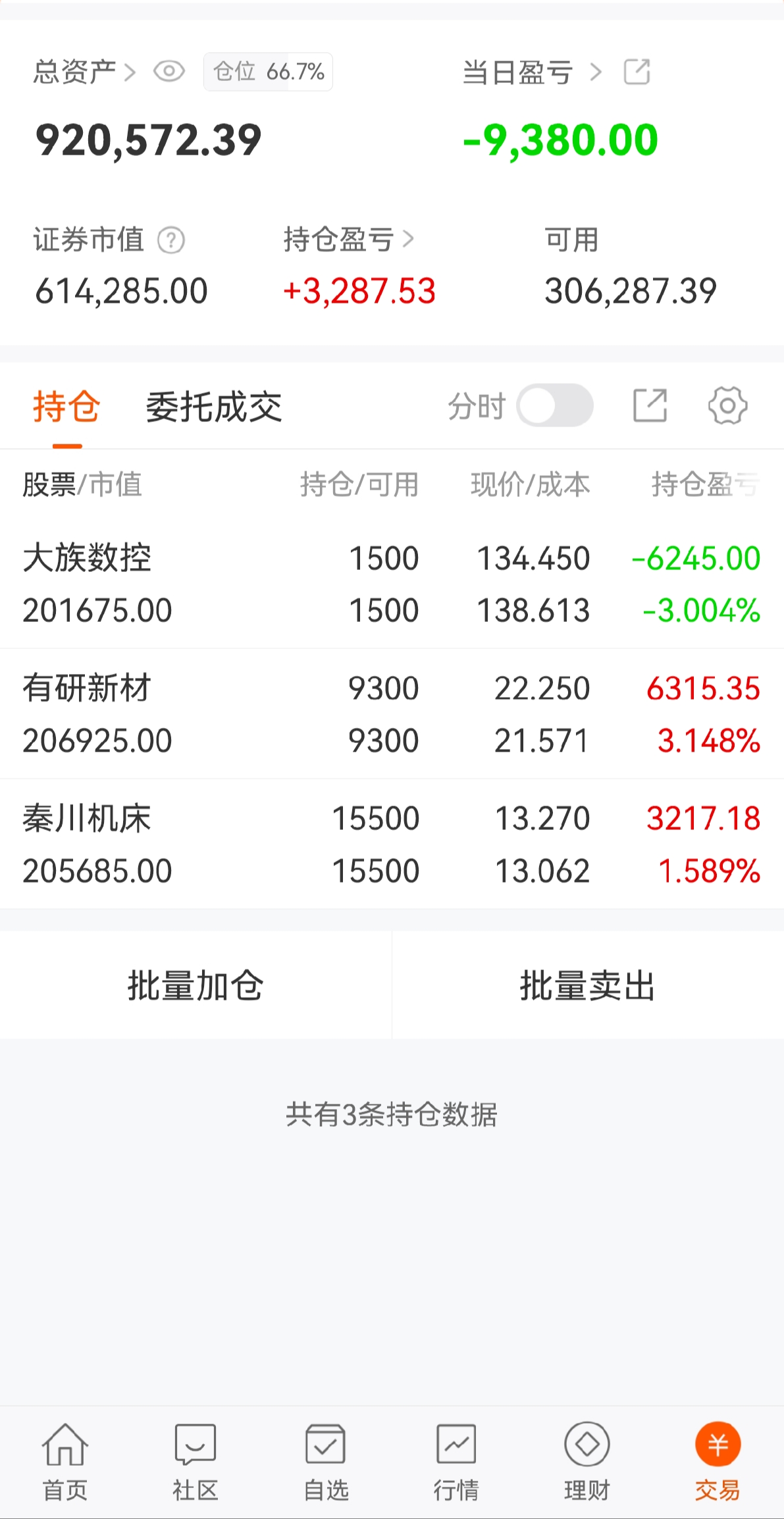 挑战30-100,实盘记录有研新材秦川机床大族数控今天有点弱啊,先观察观察吧,看