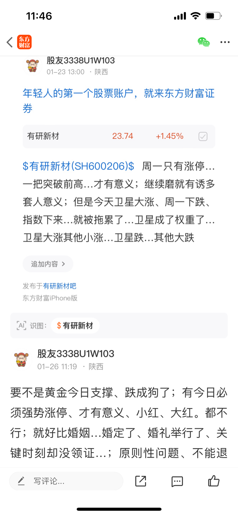 温馨提示: 1.根据《证券法》规定,禁止编造、传播虚假信息或者误导性信息,扰乱证券市场;2.用户在本社区发表的所有资料、言论等仅代表个人观点,与本网站立场无关,不对您构成任何投资建议。用户应基于自己的独立判断,自行决定证券投资并承担相应风险。《东方财富社区管理规定》