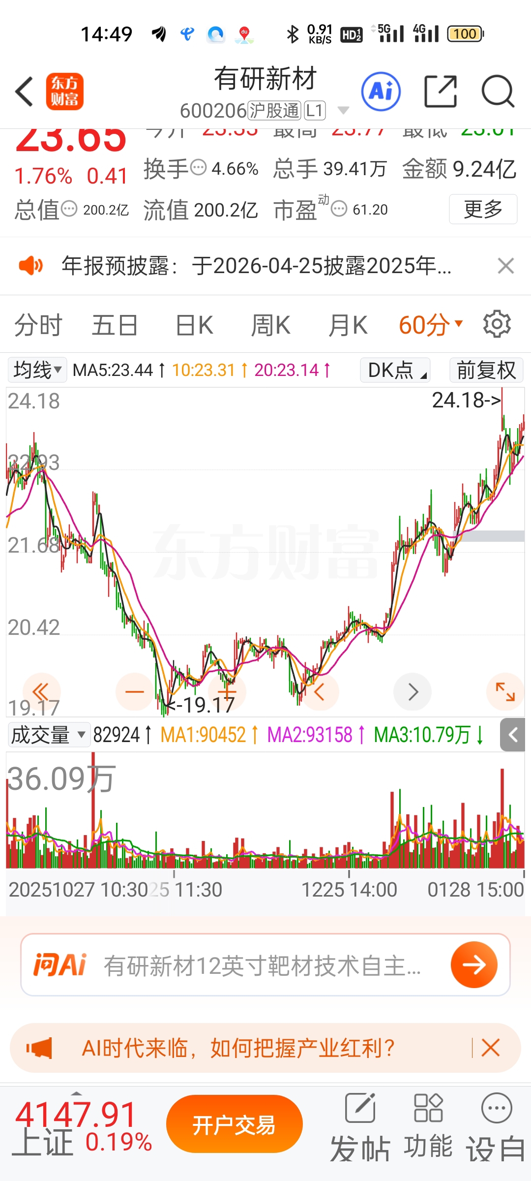 $有研新材(SH600206)$