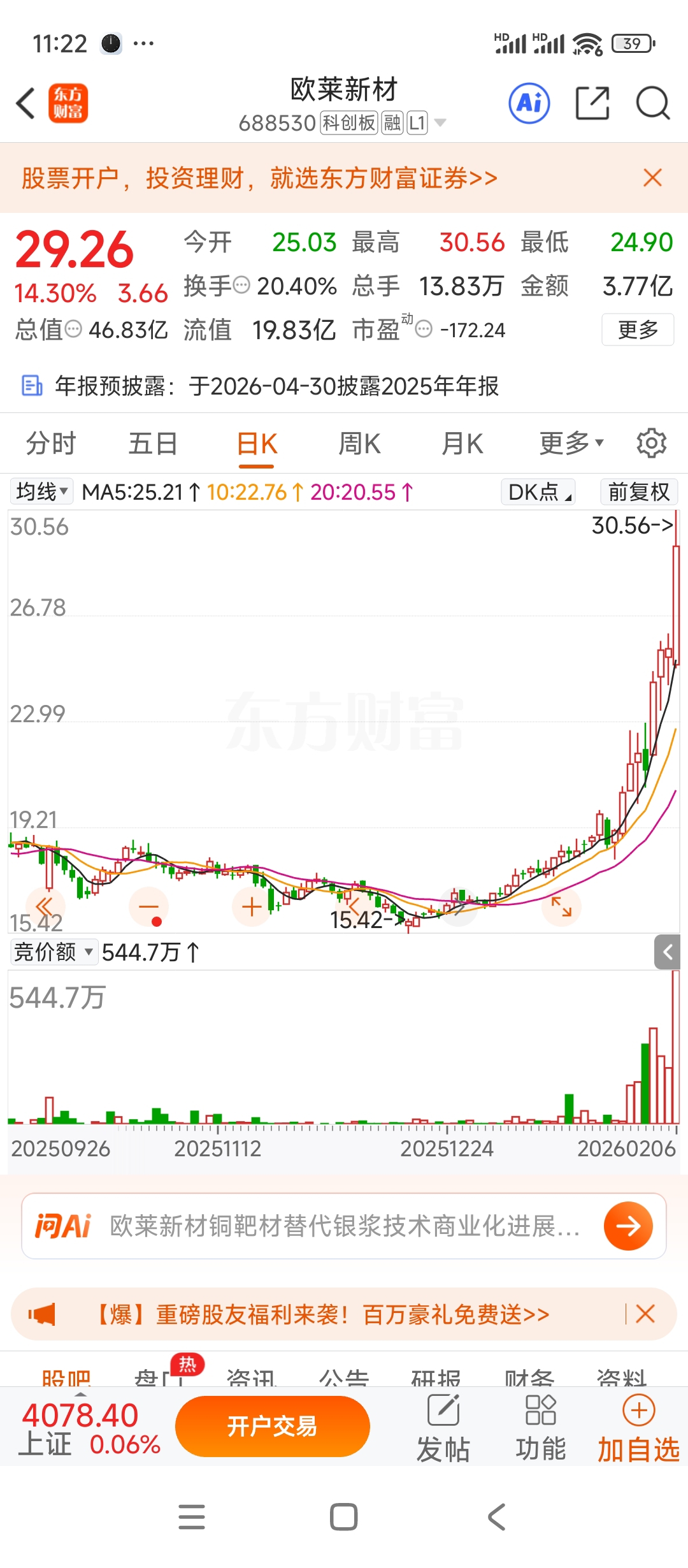 前几天靶材股欧莱新材股价低于有研新材,现在欧莱新材的股价大幅度超过有研新材。