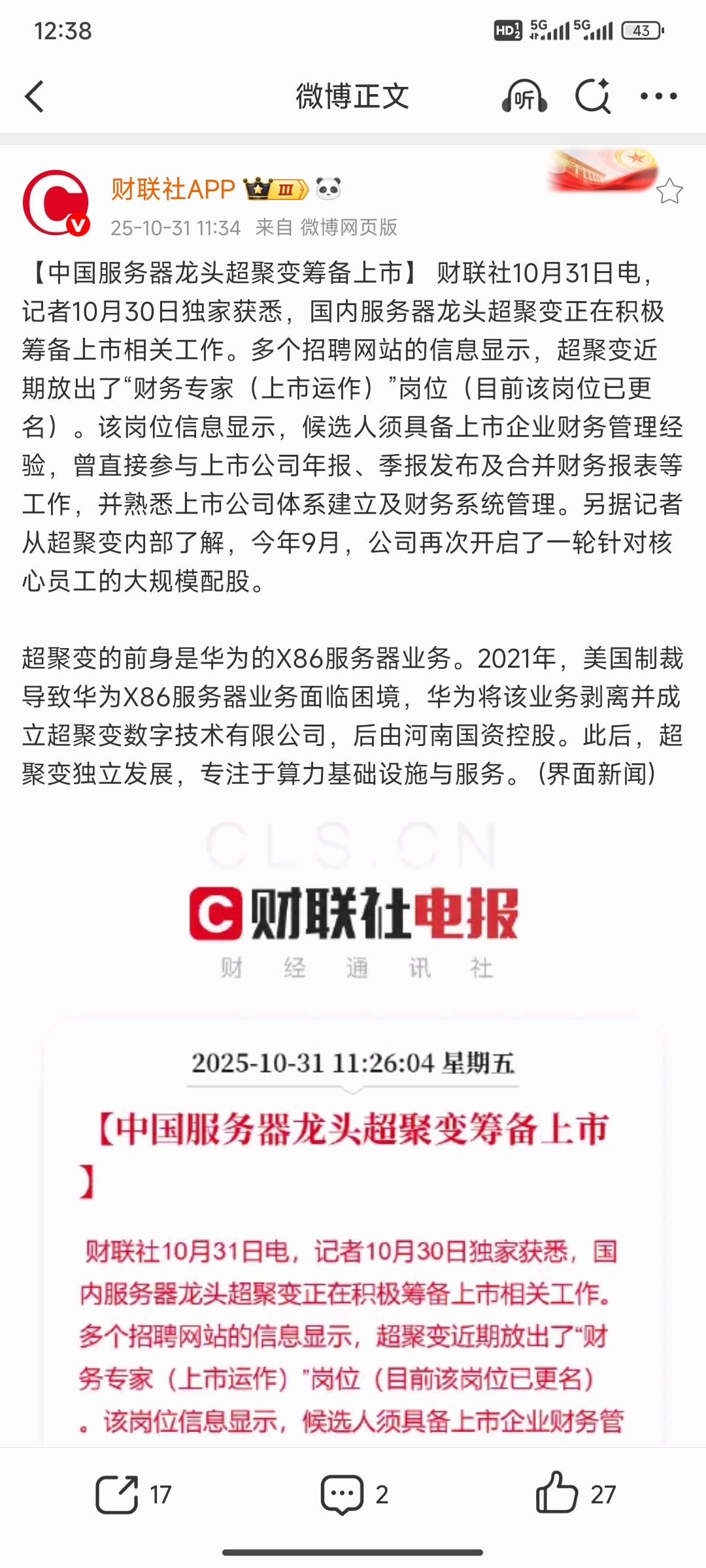 $安彩高科(SH600207)$ $荣科科技(SZ300290)$ 出新闻了,超聚变