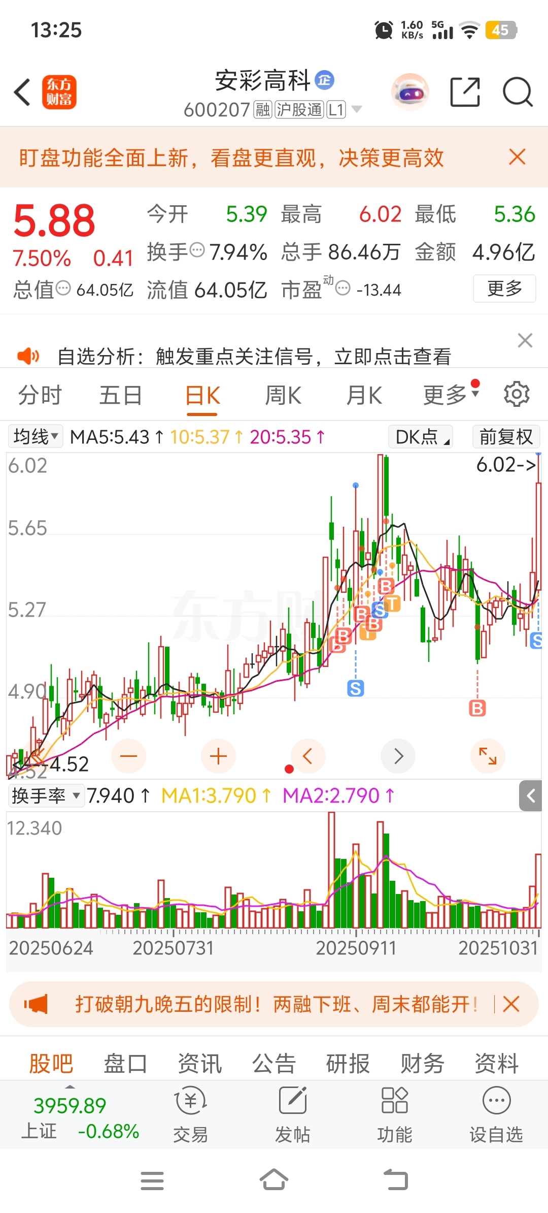 $安彩高科(SH600207)$ 涨停得走!下周再看看