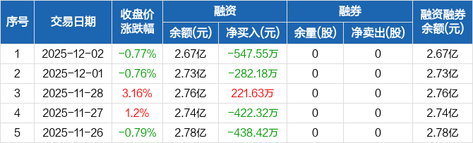 安彩高科:融资净偿还547.55万元,融资余额2.67亿元(12-02)