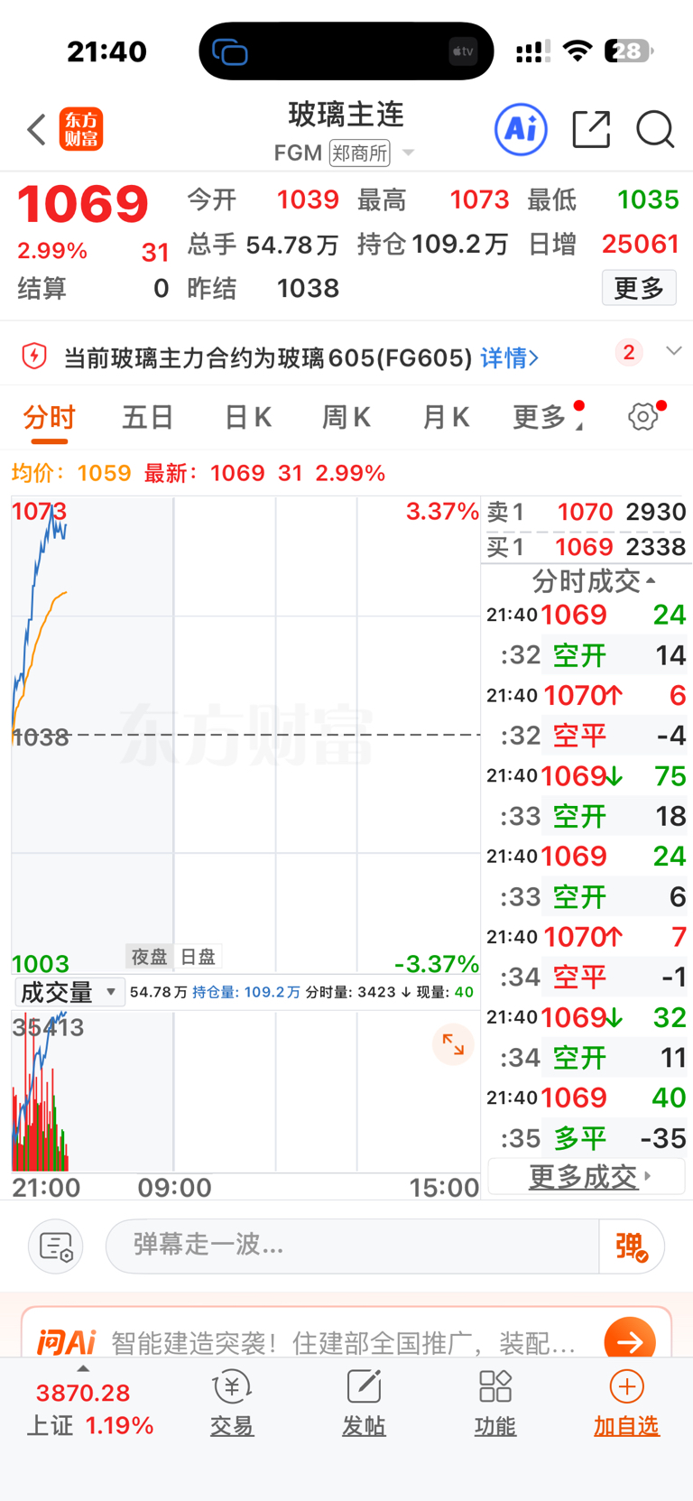 21:28:1712月17日,,玻璃期货夜盘涨幅扩大至3%,纯碱期货涨超2.3%