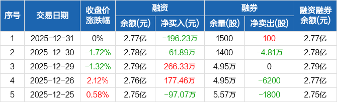 安彩高科:融资净偿还196.23万元,融资余额2.77亿元(12-31)