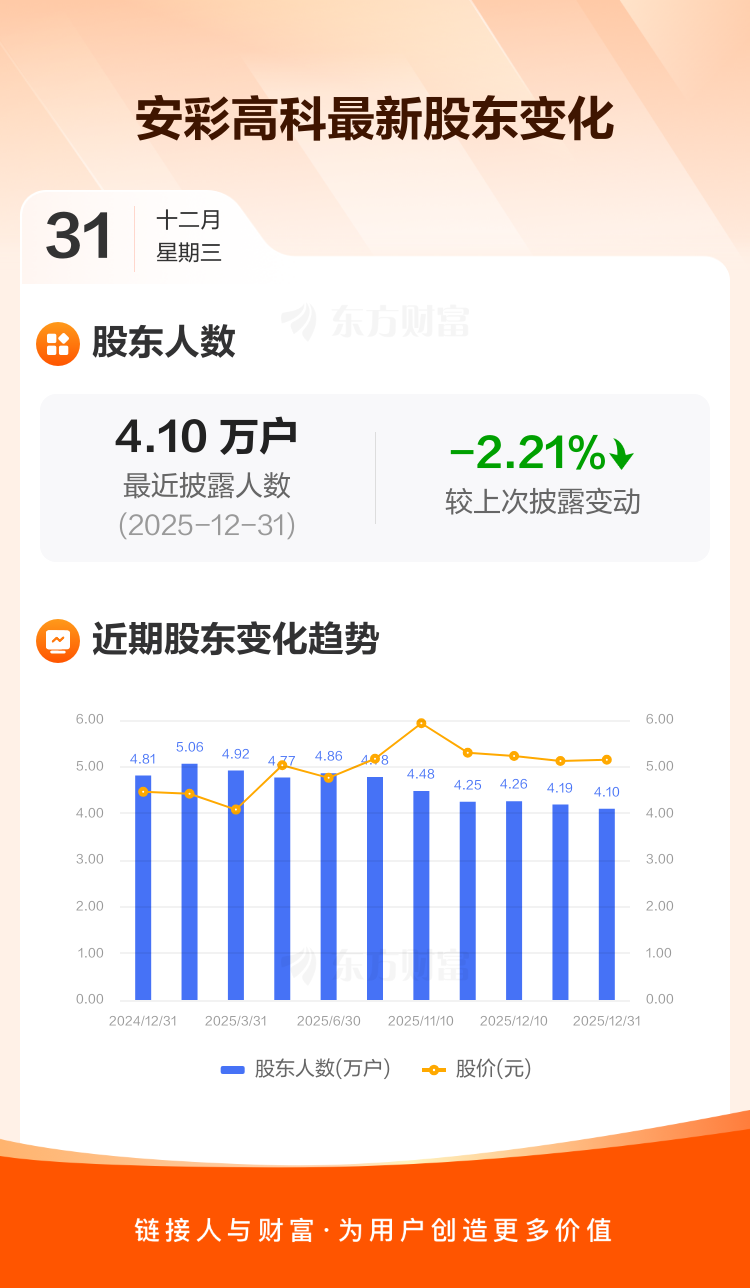 安彩高科:截至12月31日最新股东户数4.10万户,较上期减少2.21%