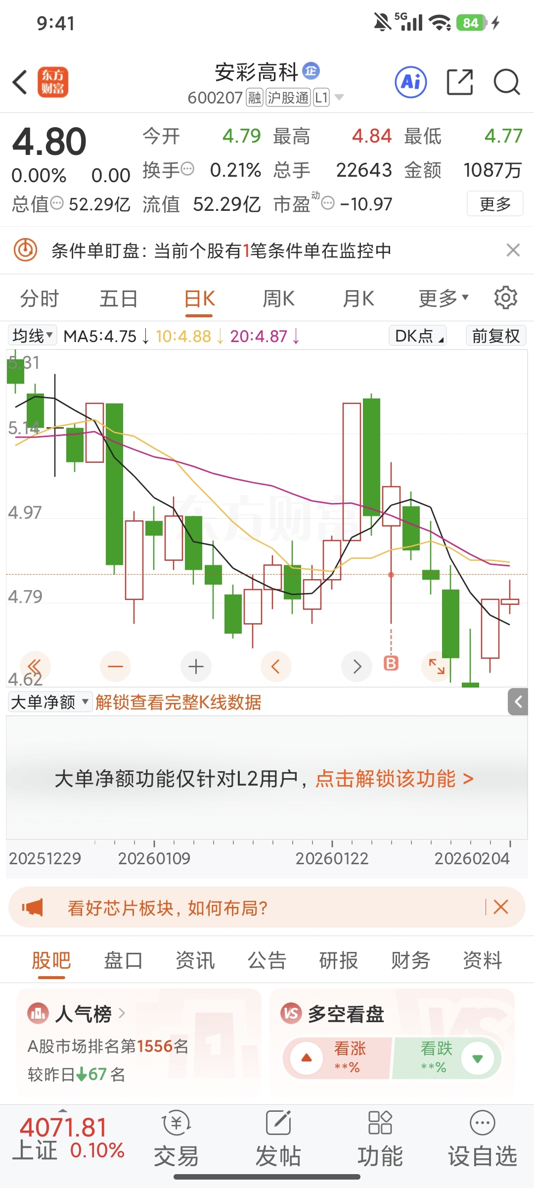 $安彩高科(SH600207)$ 别的光伏都涨,合着就我买的不涨!