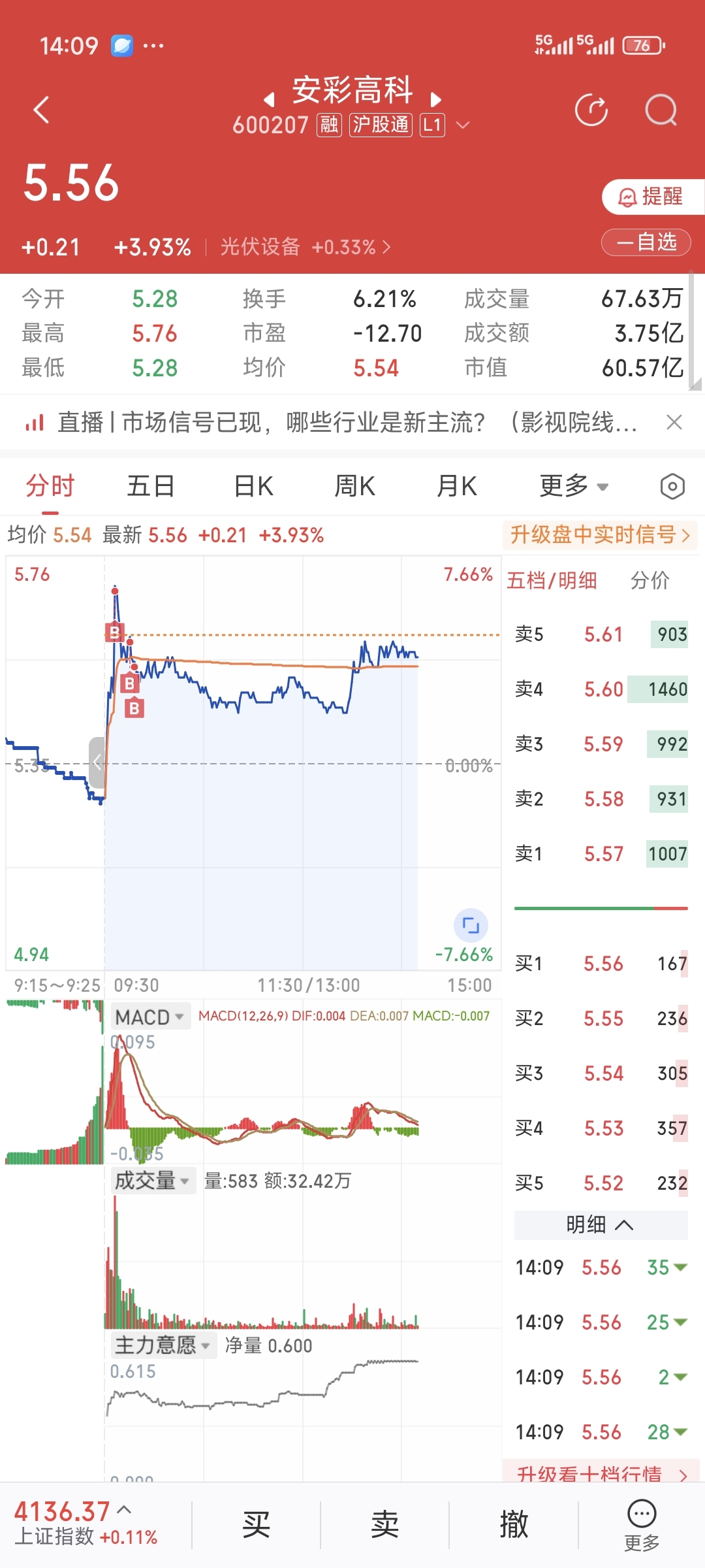 $安彩高科(SH600207)$ 怪我 刚好成本线压着。