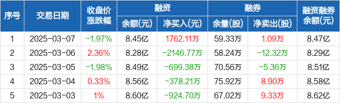衢州发展:融资净买入1762.11万元,融资余额8.45亿元(03-07)
