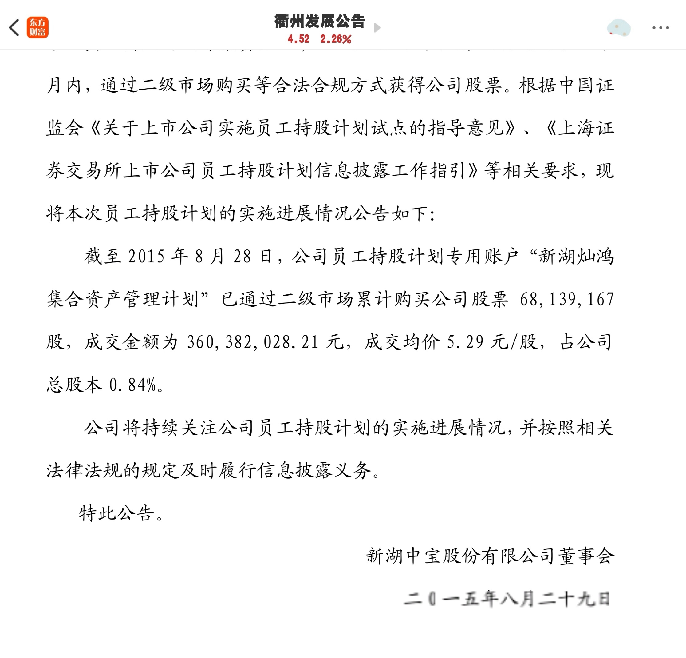 $衢州发展(SH600208)$ 衢州发展的员工持股价