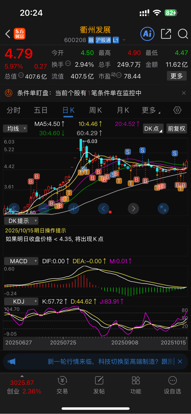 $衢州发展(SH600208)$ 持仓衢州97天,来来回回做t,我依然坚信:天空才是衢州的尽头,不推荐,不唱多,不唱空,希望同车的朋友们风雨同舟,拜托没有衢州的朋友们不要恶意唱空!