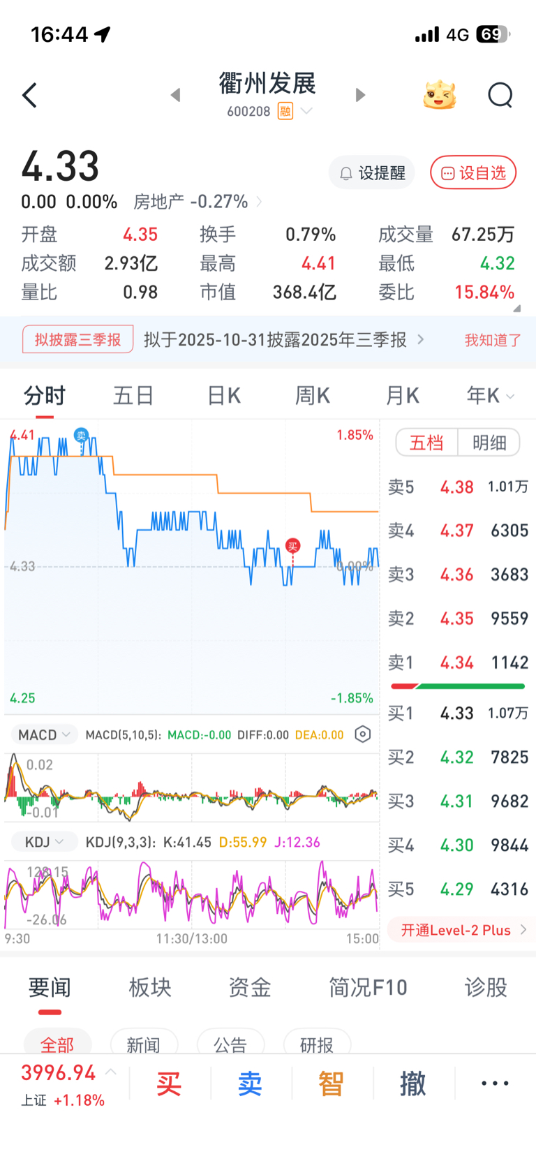 $衢州发展(SH600208)$ 今天差点被它耍了,下午以为能涨两分收盘的,结果就这?