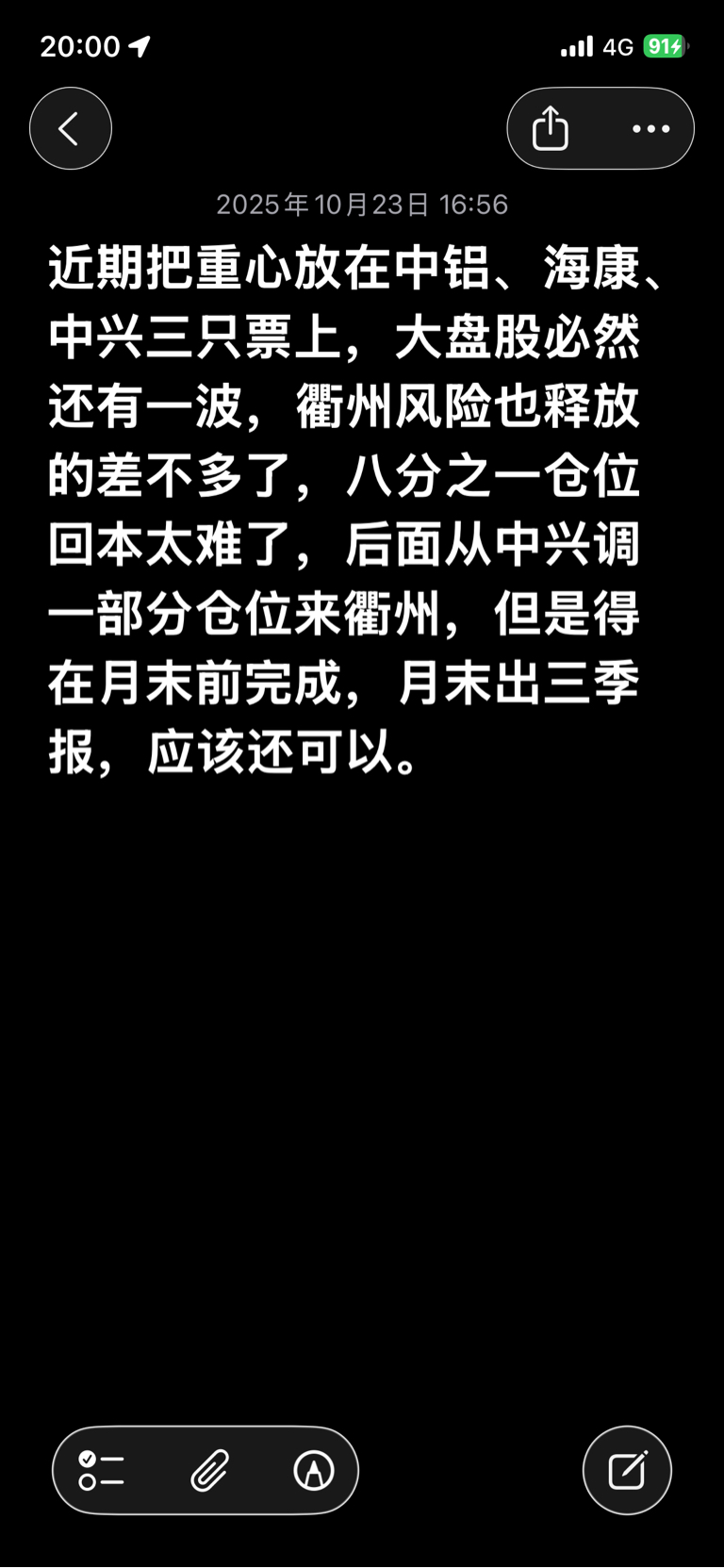 $衢州发展(SH600208)$ 再见了,人多的有点可怕,明天不论高开多少还是低开多少,都要离开了,没有坚守的必要了,上周四写给自己这段话,让自己给它加点仓位,所以这周从周一到周四一直在加仓,因为知道他业绩不会差,唯独没想到人还有这么多,主力真的很失败!既然洗不出去别人,那就把我洗走吧!这么多个交易日,一直在煎熬,这次离开就再也不见了!
