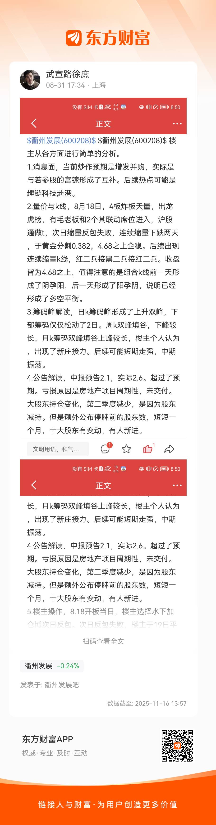 $衢州发展(SH600208)$  楼主个人看法,仅供参考