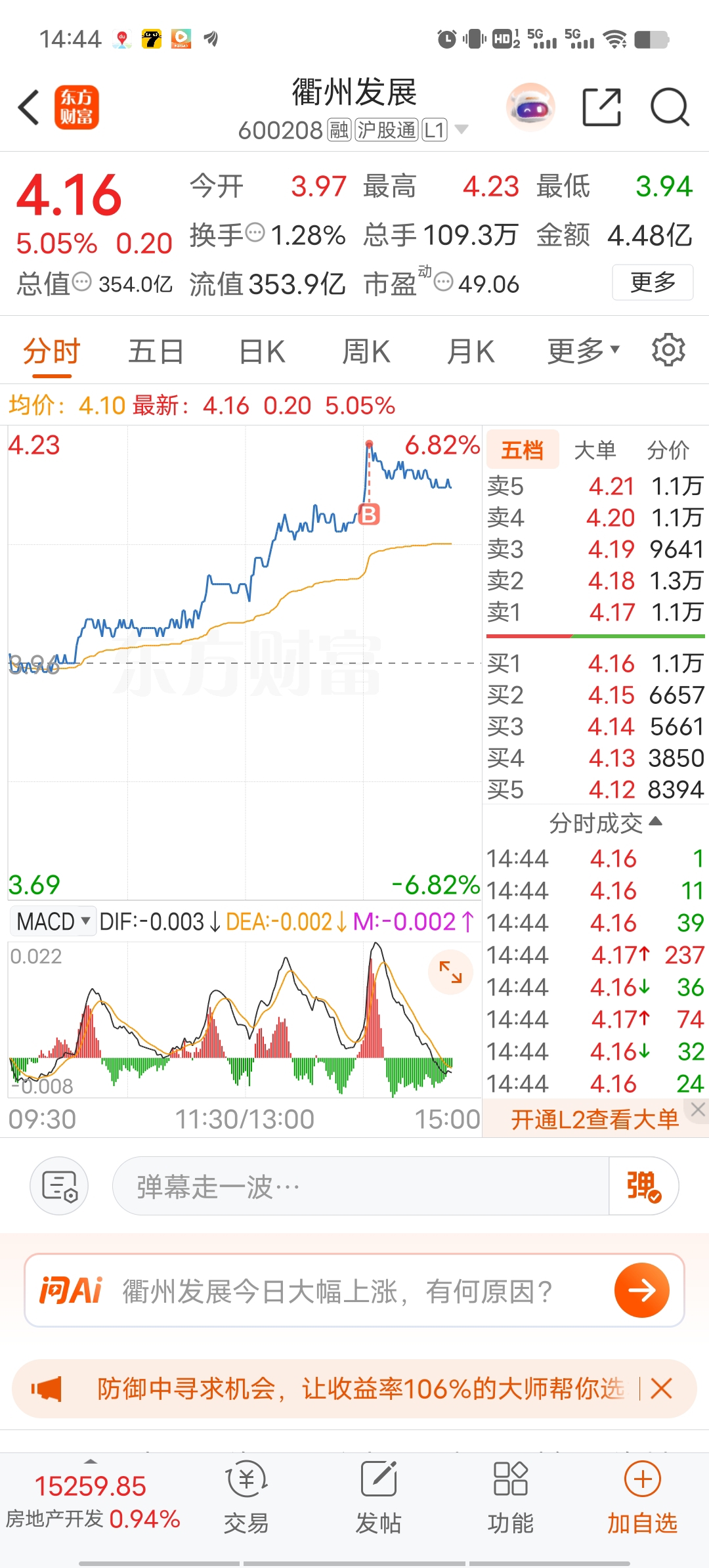 $衢州发展(SH600208)$ 被骗进来了,当是交学费。看看有没有涨停板。