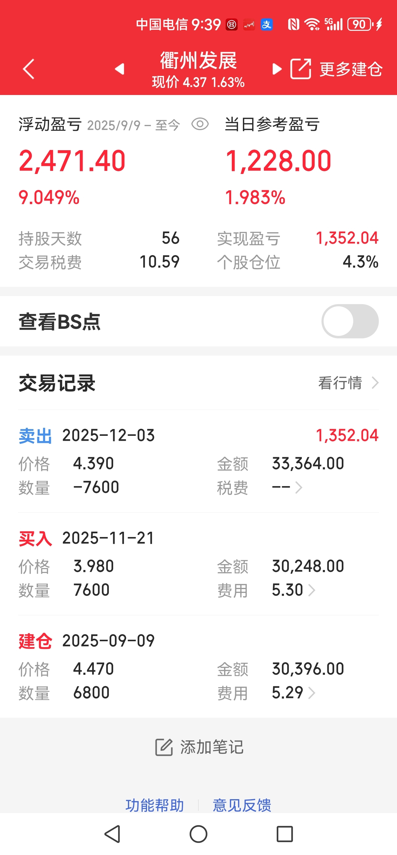 $衢州发展(SH600208)$ 4.39逃一部分