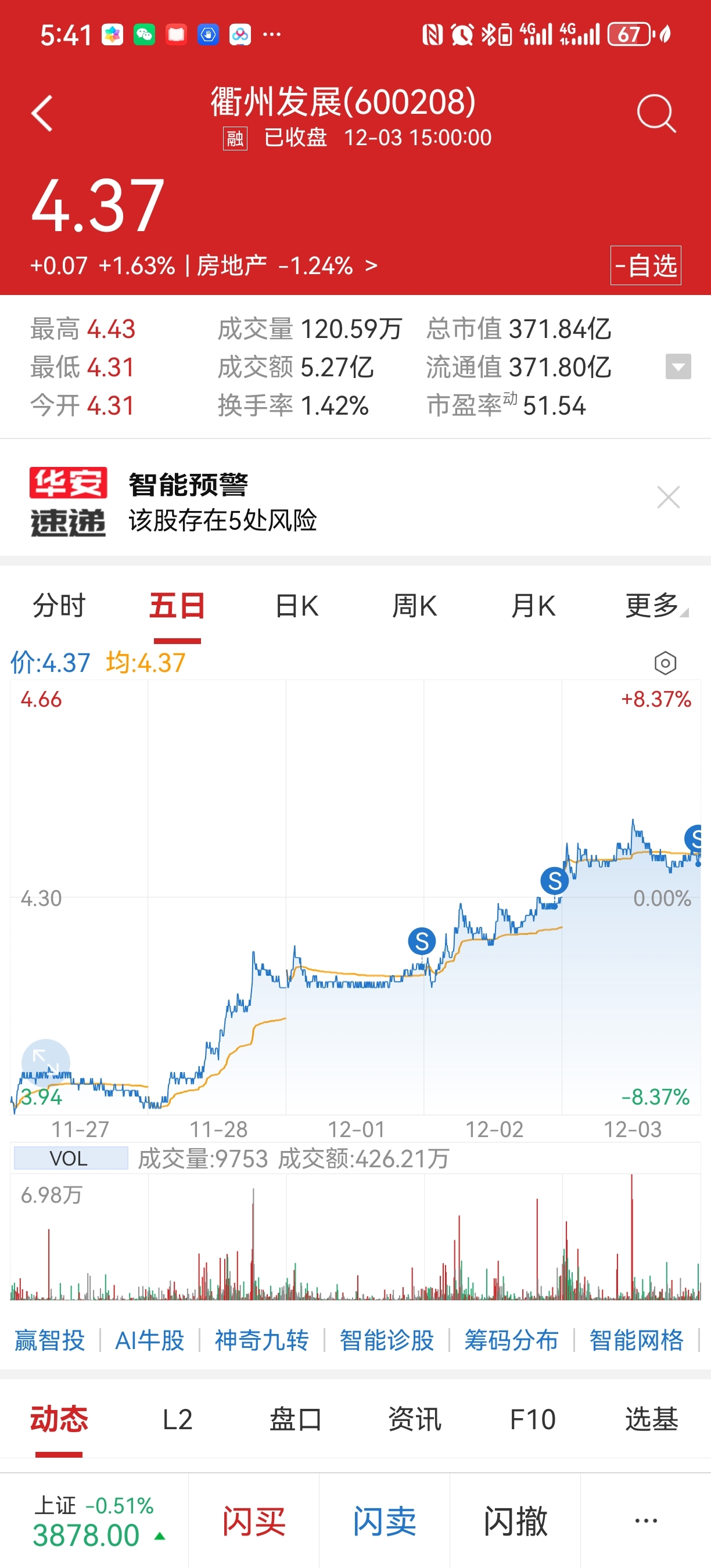 $衢州发展(SH600208)$ 明天接回来