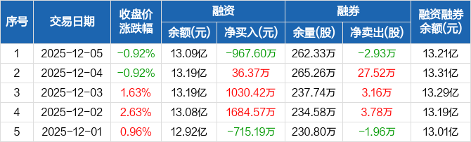 衢州发展:融资净偿还967.6万元,融资余额13.09亿元(12-05)
