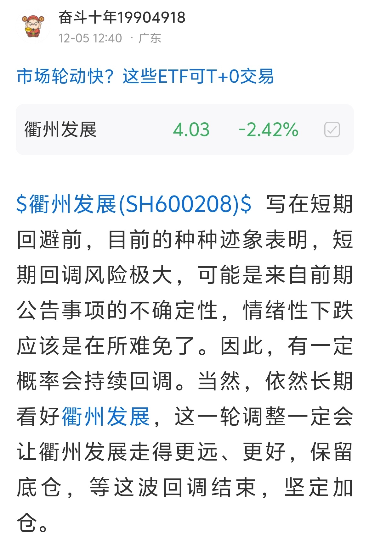 $衢州发展(SH600208)$ 个人观点,收购若失败(风险信号越来越明显),3元附近能看到,庄的平均价不到3,短期真的要注意风险。但是,仍然中长期看好,大家短期回避即可,明年这票一定有前途。一周前提示过大家,你听劝了吗?