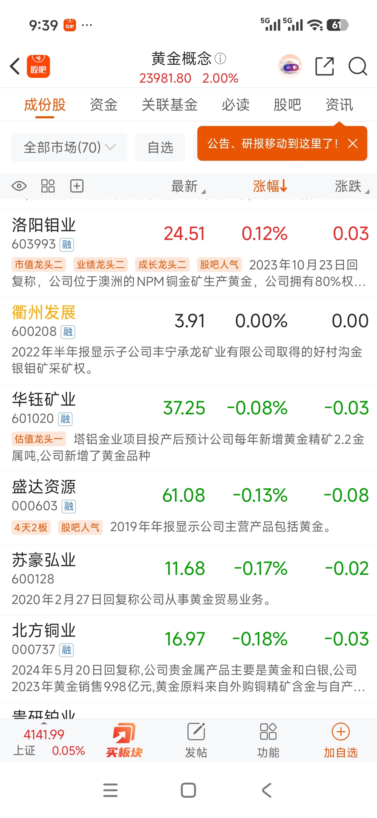 $衢州发展(SH600208)$ 泥麻滴你也有黄金概念表现那么差