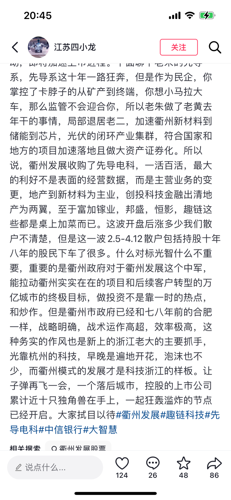 $衢州发展(SH600208)$