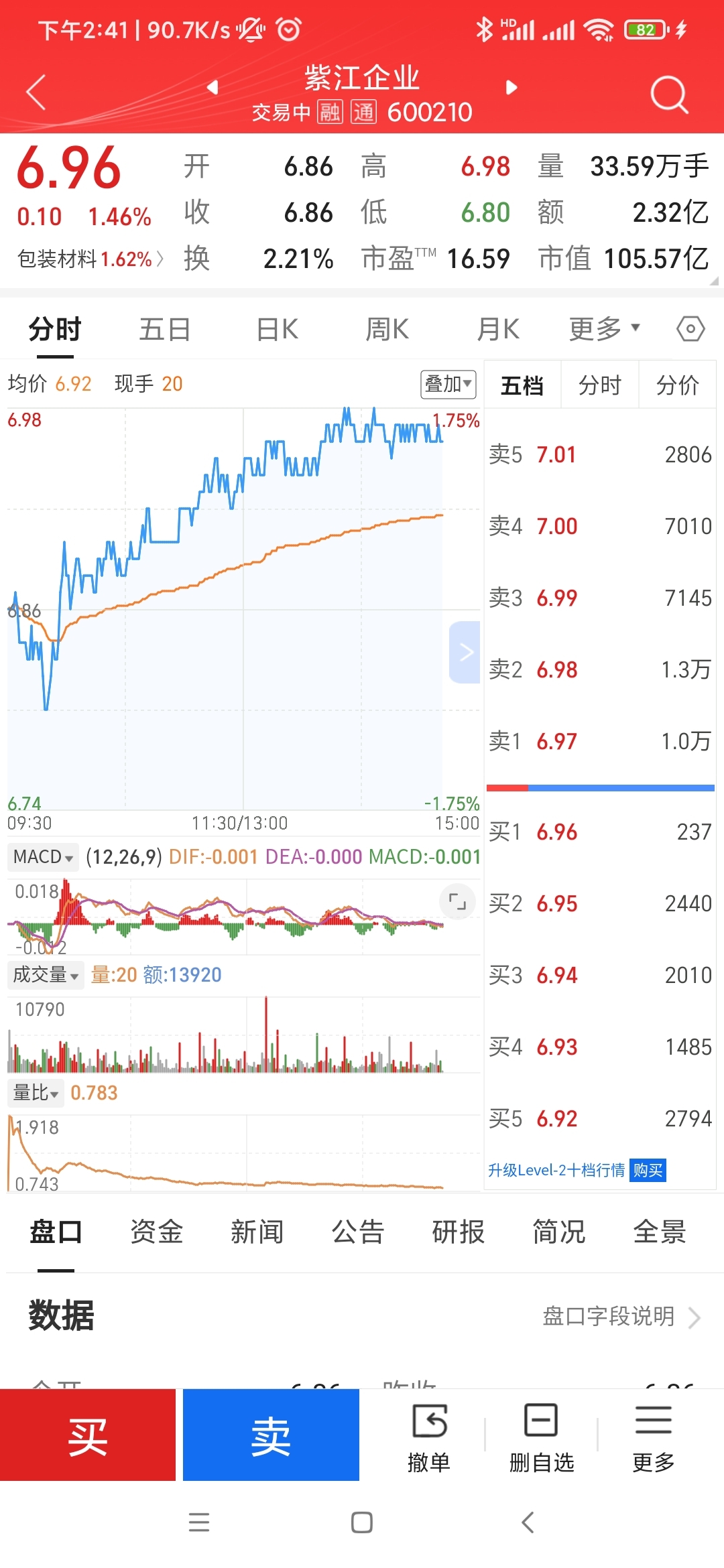 $紫江企业(SH600210)$ 主力一万手排队等着出货。散户看到直接腿都。想进来助力的欢迎。