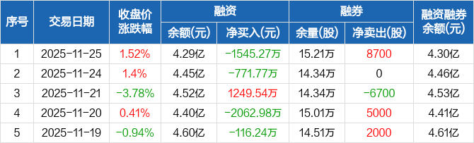 紫江企业:融资净偿还1545.27万元,融资余额4.29亿元(11-25)