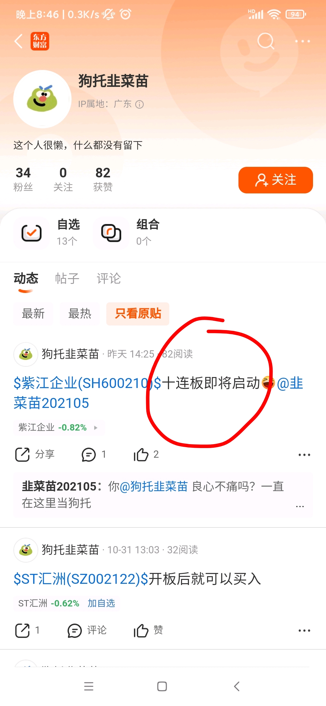 $紫江企业(SH600210)$ 大家瞧这狗托@狗托韭菜苗 < 当狗托能当成这样无尊严的已经是少见了。不停改名就怕我们散户扒它黑幕出来,估计改多了连它老mu都认不出来了。大家看图,希望大伙看到多转发,不要被这自取其辱的狗托骗了 。它没有一句是真话全是满嘴谎言,这狗托人品特别差,除了骗,还是骗,大家千万别上当。