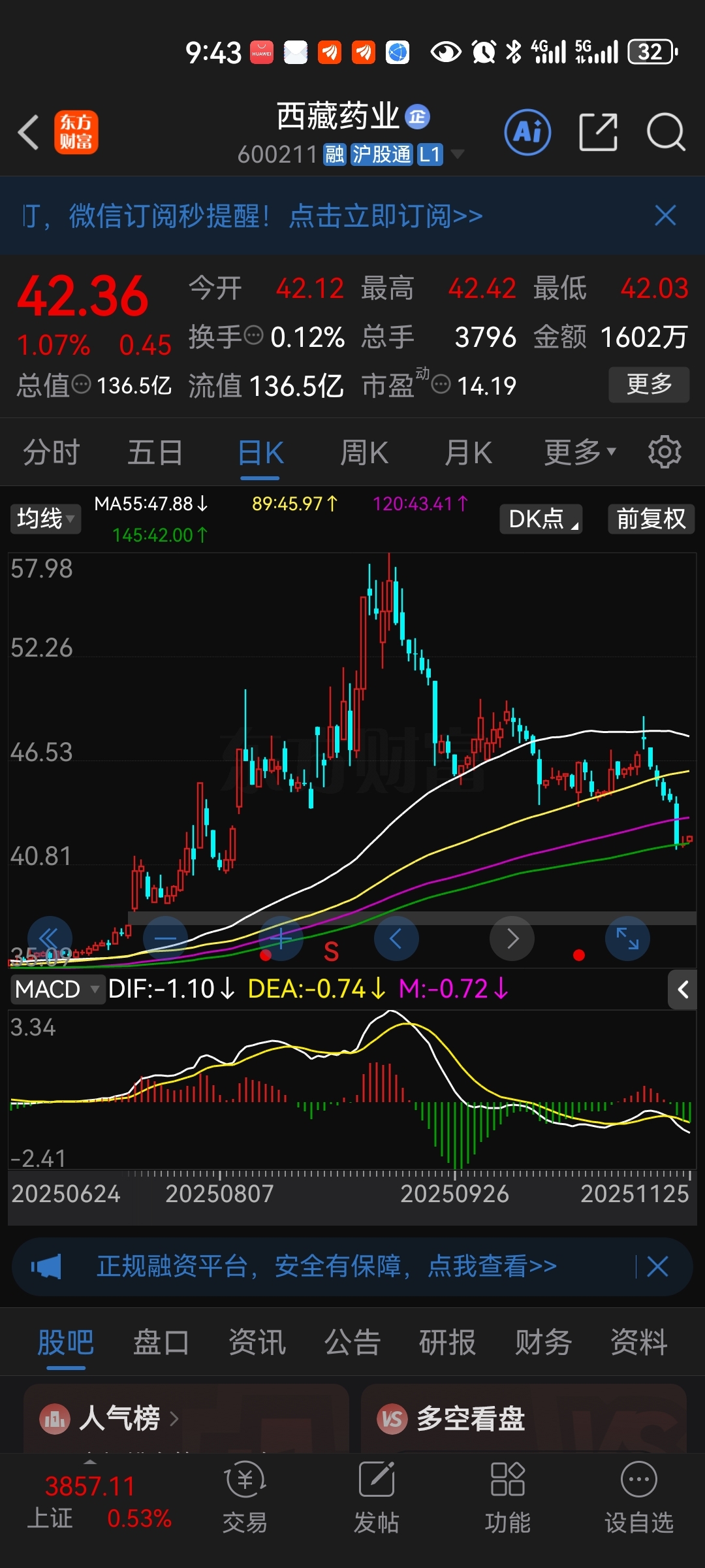 $西藏药业(SH600211)$ 看145天线会不会击穿,不会击穿就冲,会击穿就等!