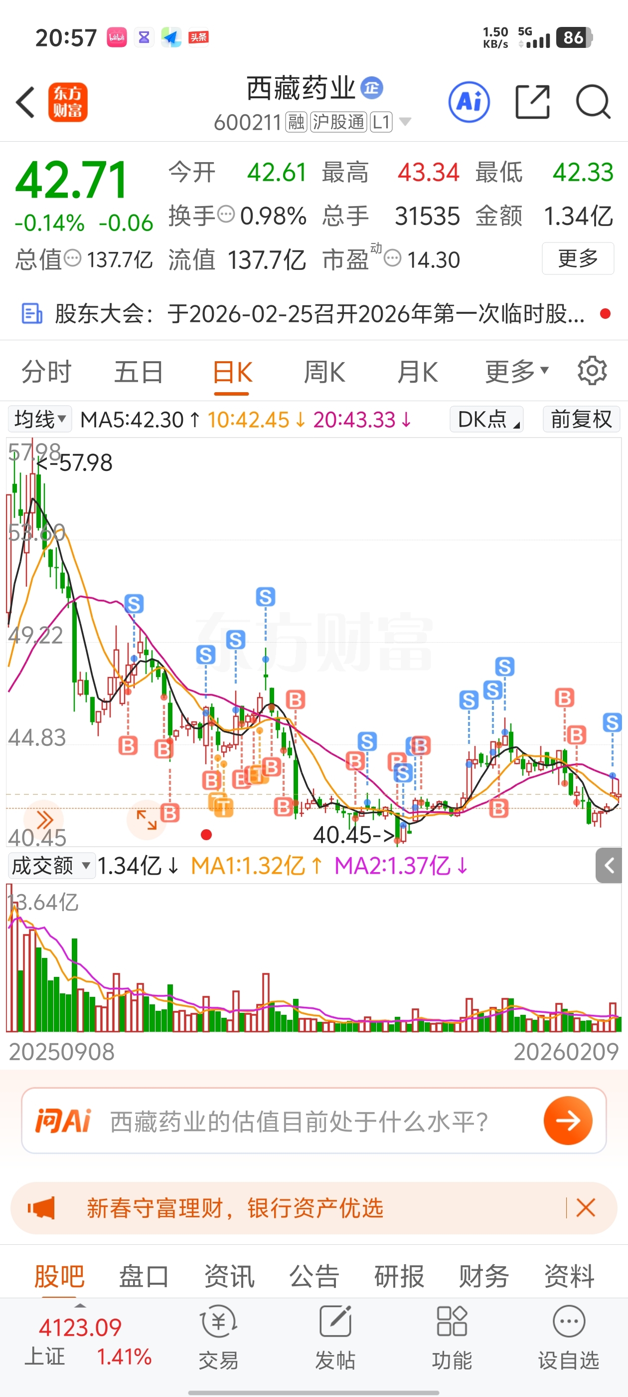 $西藏药业(SH600211)$ 这个票就得做t才能有得赚,太难了,反正也到底部区间了,坚持住
