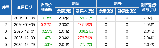 绿能慧充:融资净偿还56.92万元,融资余额2.02亿元(01-06)