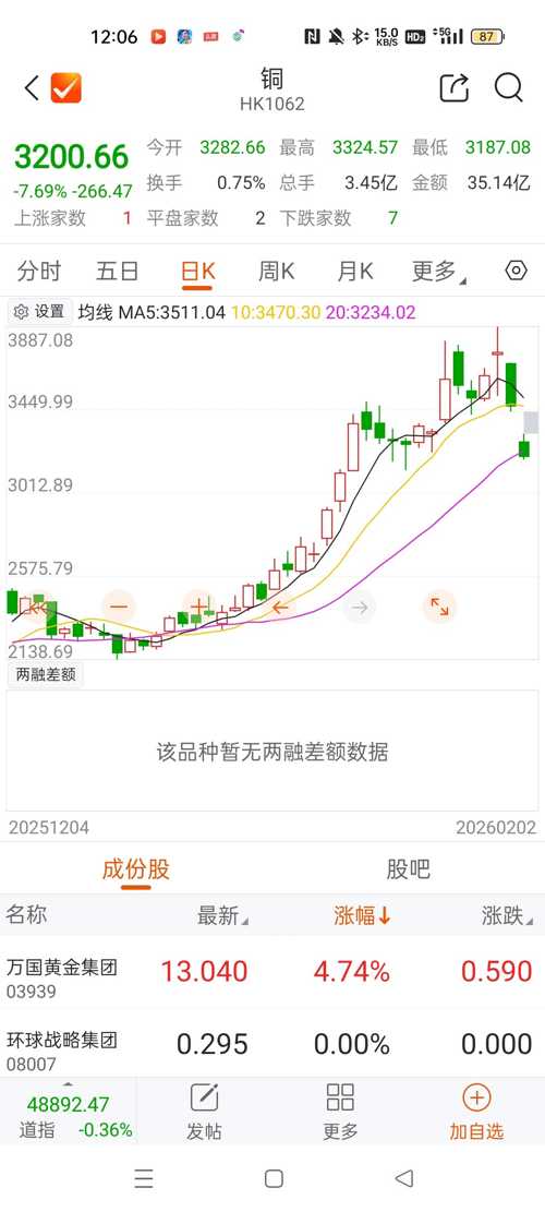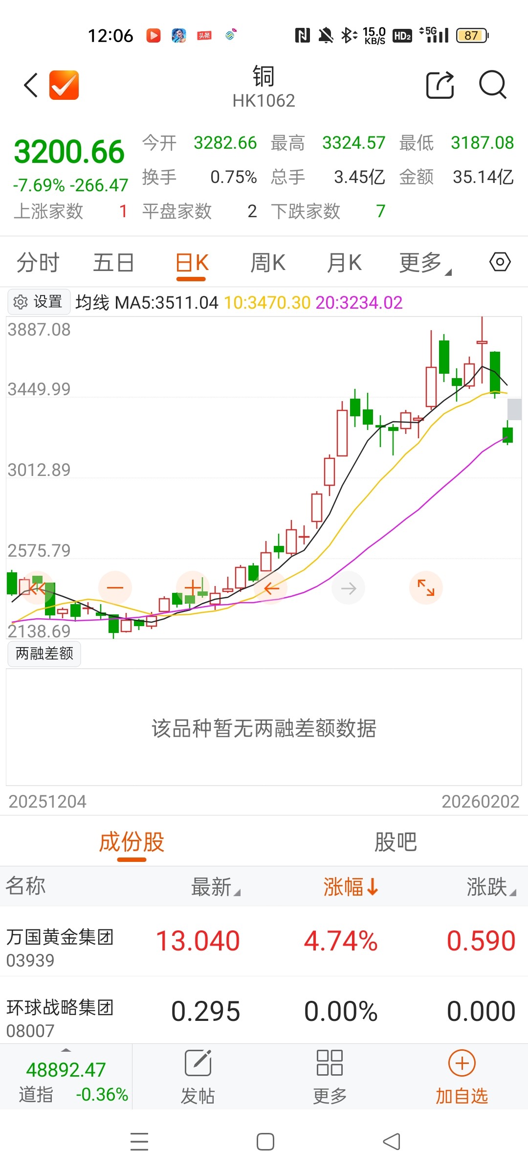 最近铜价下跌也没有看他涨还说跟铜有关系说白这票银行贷款录超高74%主力游子不愿跟
