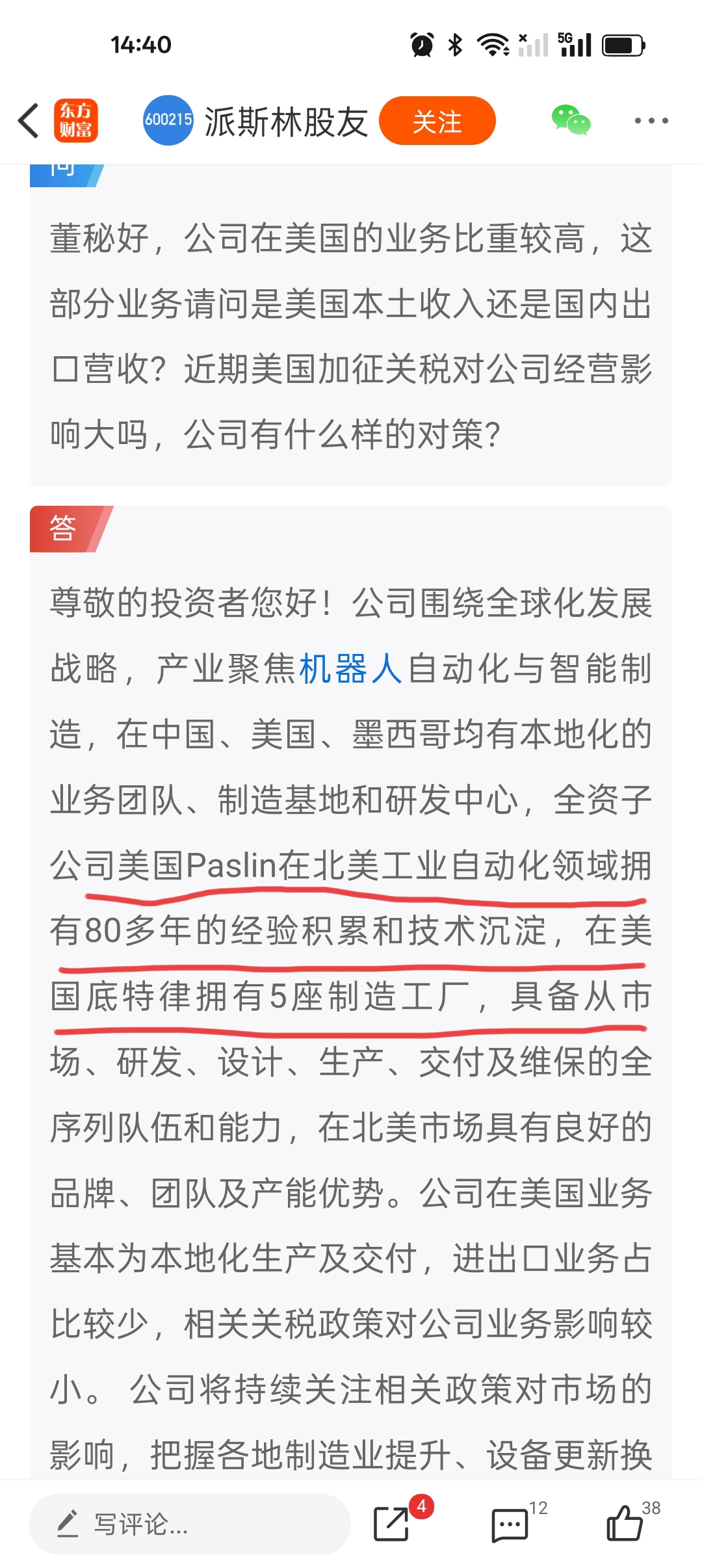$派斯林(SH600215)$ 关税利好美国本土布局的公司。