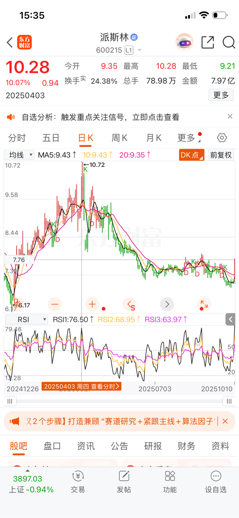 $派斯林(SH600215)$ 以史为鉴,上次关税造成的冲突前一天,派斯林也是涨停