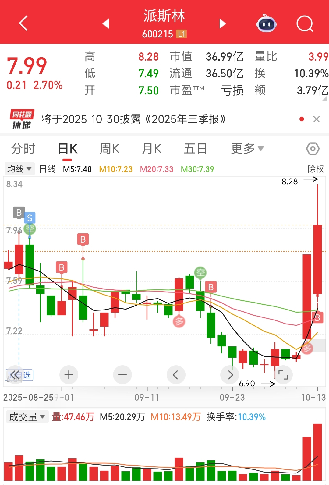 $派斯林(SH600215)$ 量价齐升,适合加仓,把筹码拿好,会给你意想不到回报!