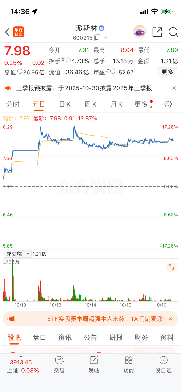 $派斯林(SH600215)$ 太好看了,在水平线上收集筹码