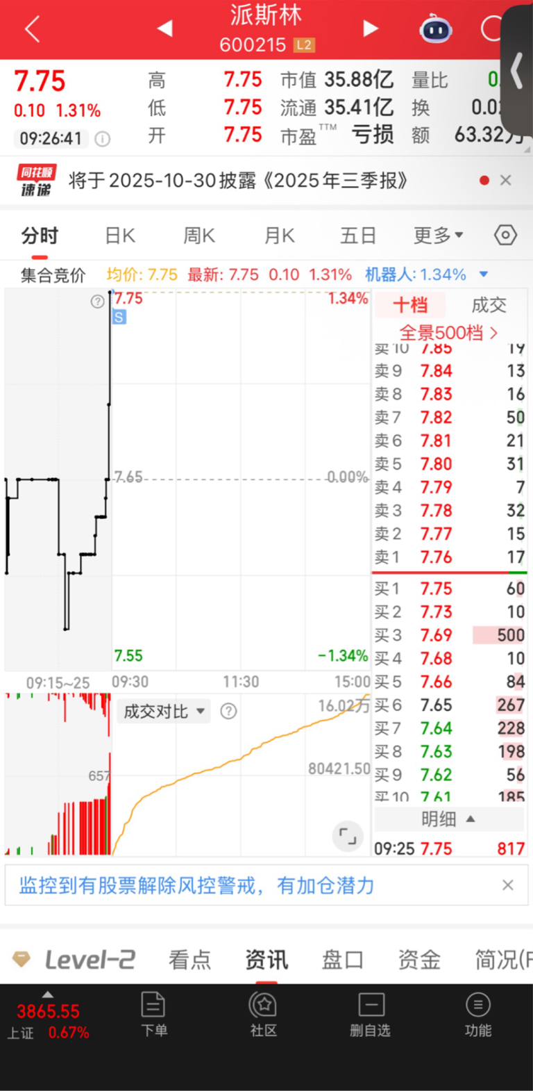 $派斯林(SH600215)$ 早盘竞价被吓割肉了一大半,还有一点,真不想玩这股了