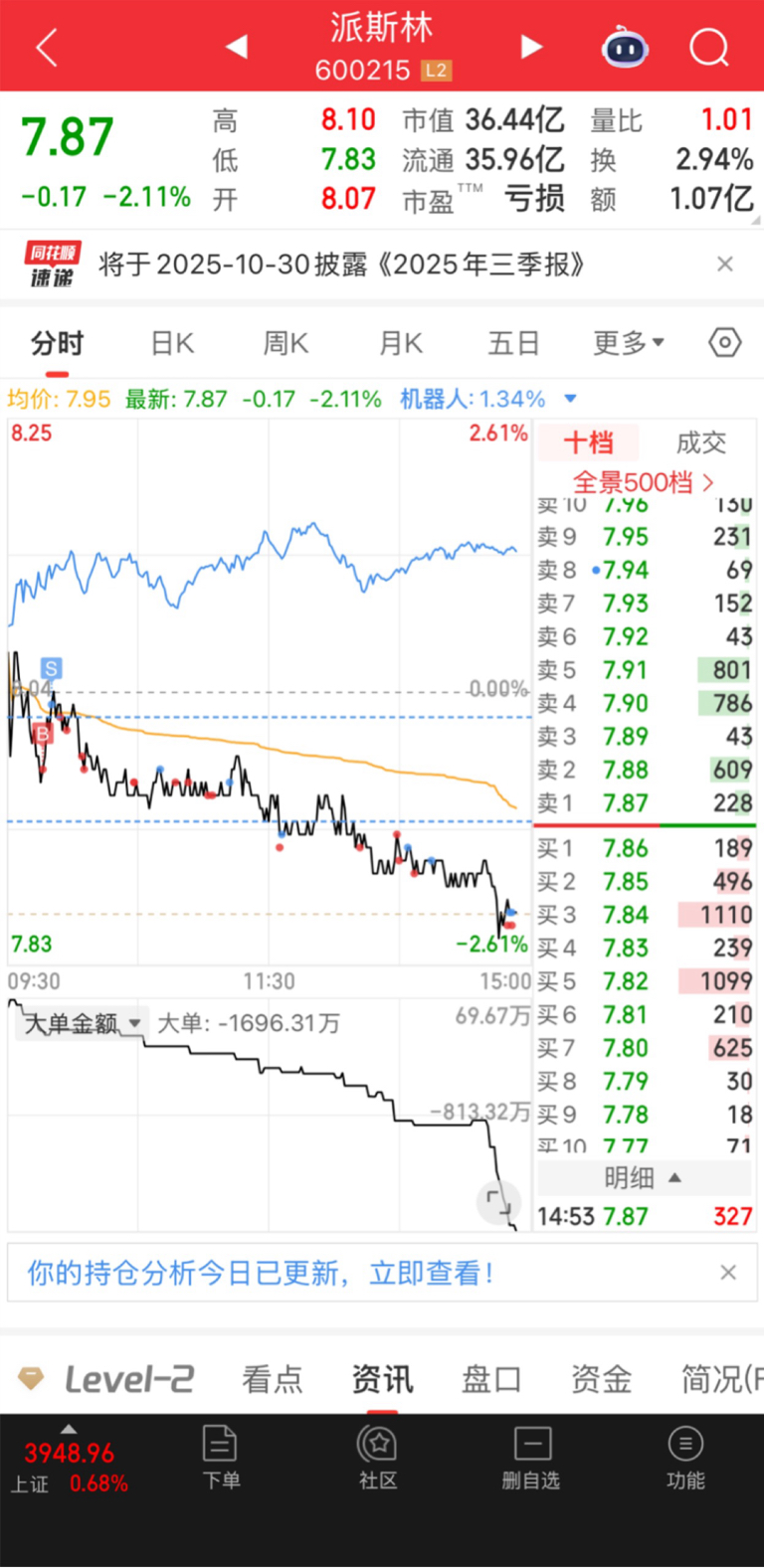 $派斯林(SH600215)$ 知行合一,做T加仓,早盘高价我都没卖,可见我做多的决心