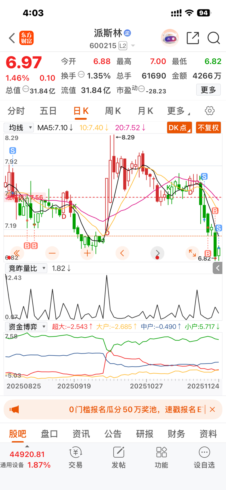 $派斯林(SH600215)$ 88,拉机股,涨时畏畏缩缩,跌时一马当先