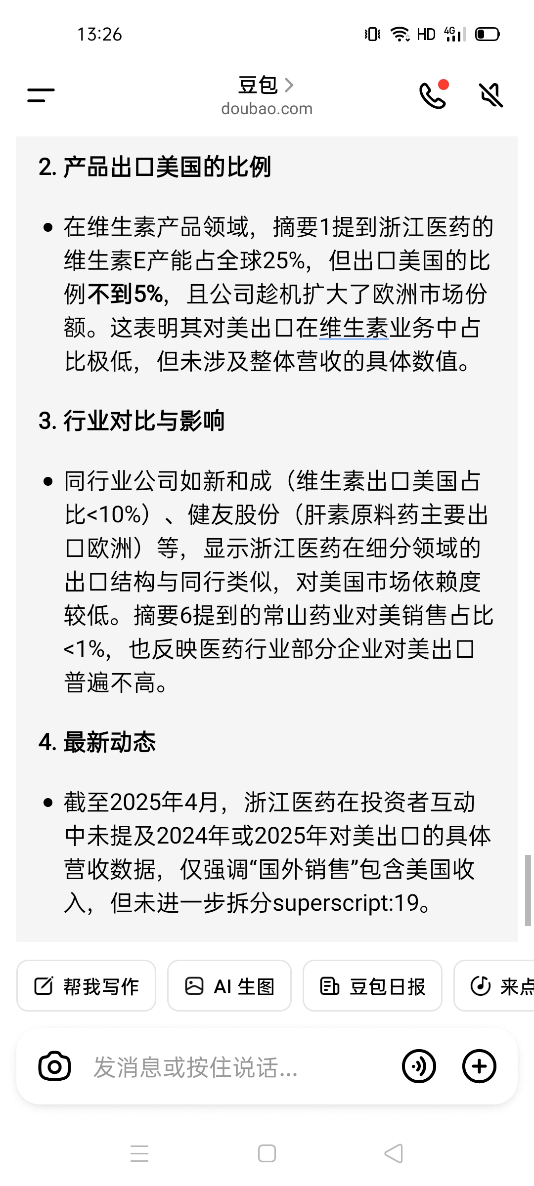 $浙江医药(SH600216)$ 出口美国占比5%左右