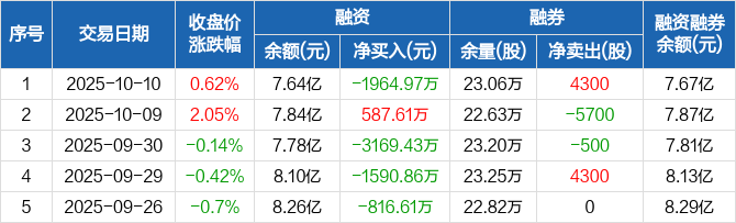 浙江医药:融资净偿还1964.97万元,融资余额7.64亿元(10-10)